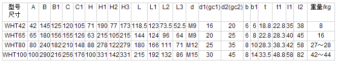 HT42、WHT65、WHT80、WHT100型圓弧圓柱蝸桿減速機(jī)I—IV式安裝型式及尺寸(JB2318—79)