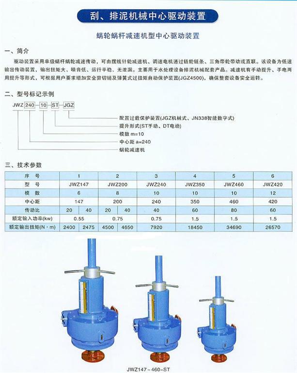 JWZ刮泥機(jī)驅(qū)動(dòng)裝置采用單級(jí)蝸桿蝸輪減速傳動(dòng),可由擺線針輪減速機(jī)、調(diào)速電機(jī)通過(guò)鏈輪鏈條、三角帶輪帶動(dòng)或直聯(lián)。該設(shè)備為低速輸出傳動(dòng)裝置,輸出扭矩大、噪音低、運(yùn)行平穩(wěn)、無(wú)泄漏。主要用于水處理設(shè)備排泥機(jī)械配套產(chǎn)品。減速機(jī)有手動(dòng)提升、手電兩用提升的等形式,可根據(jù)用戶要求增加安全剪切銷及彈簧式過(guò)扭矩自動(dòng)保護(hù)裝置(JGZ4500),確保整套設(shè)備安全運(yùn)轉(zhuǎn)。
